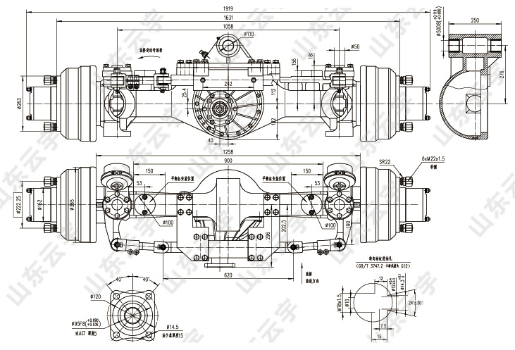桥壳材料为球铁,钢性好。