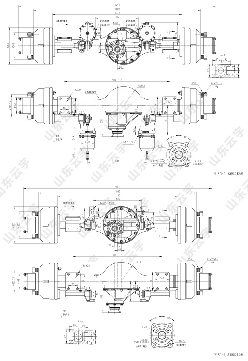 ● 整体式铸钢桥壳,钢性好。