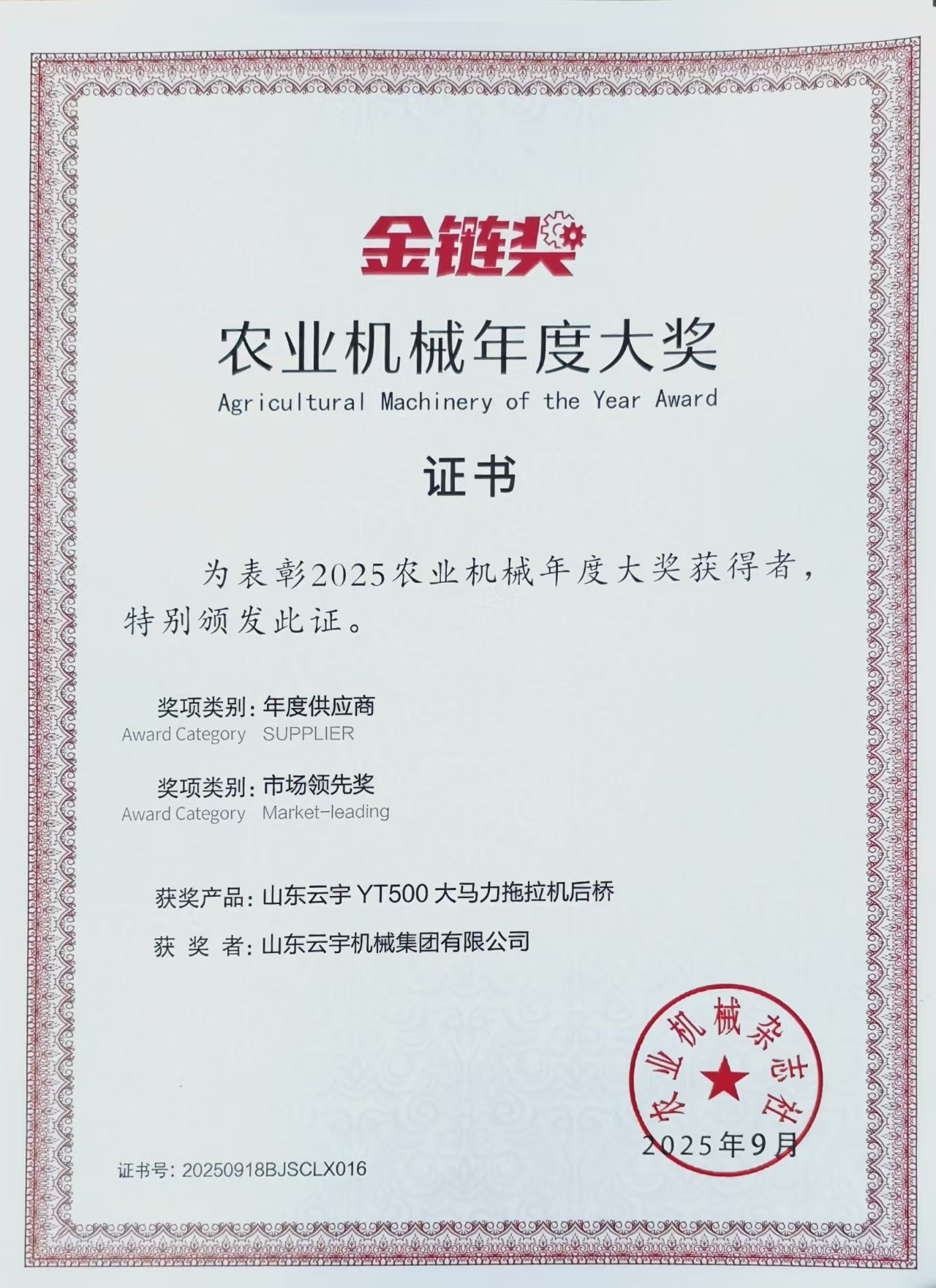 YT500市场领先奖